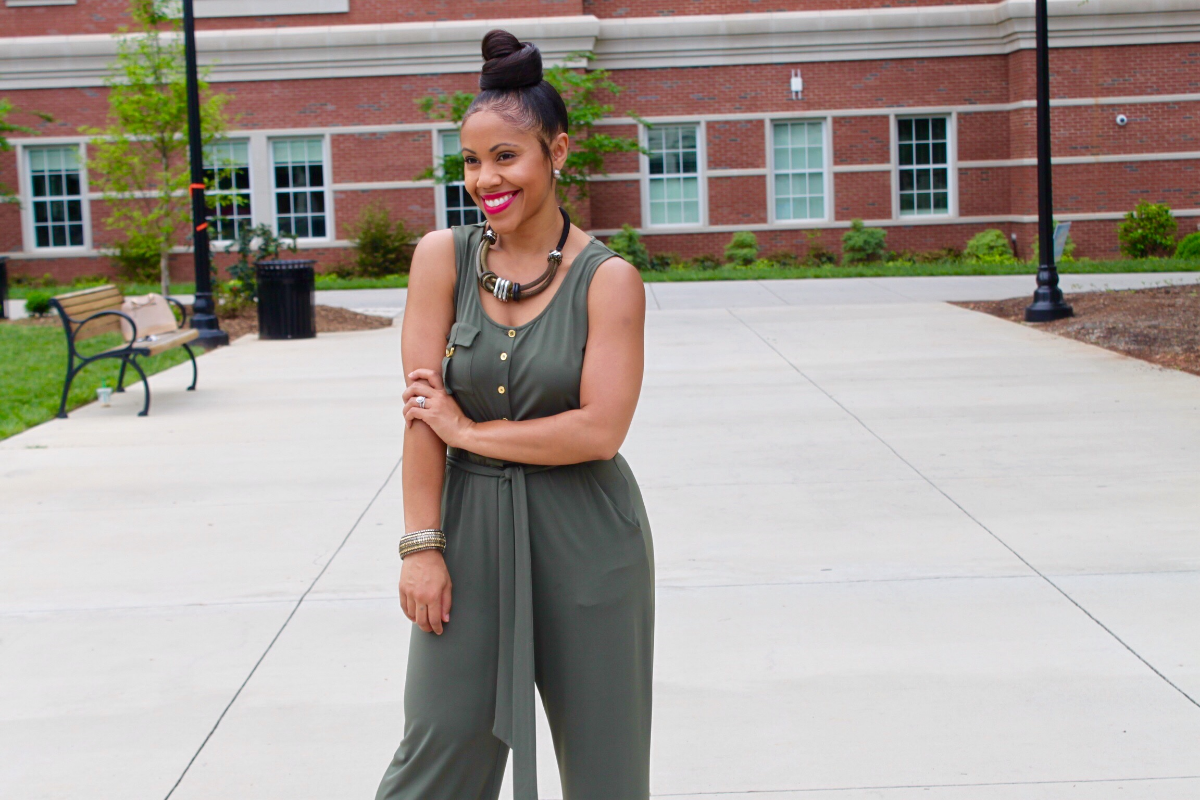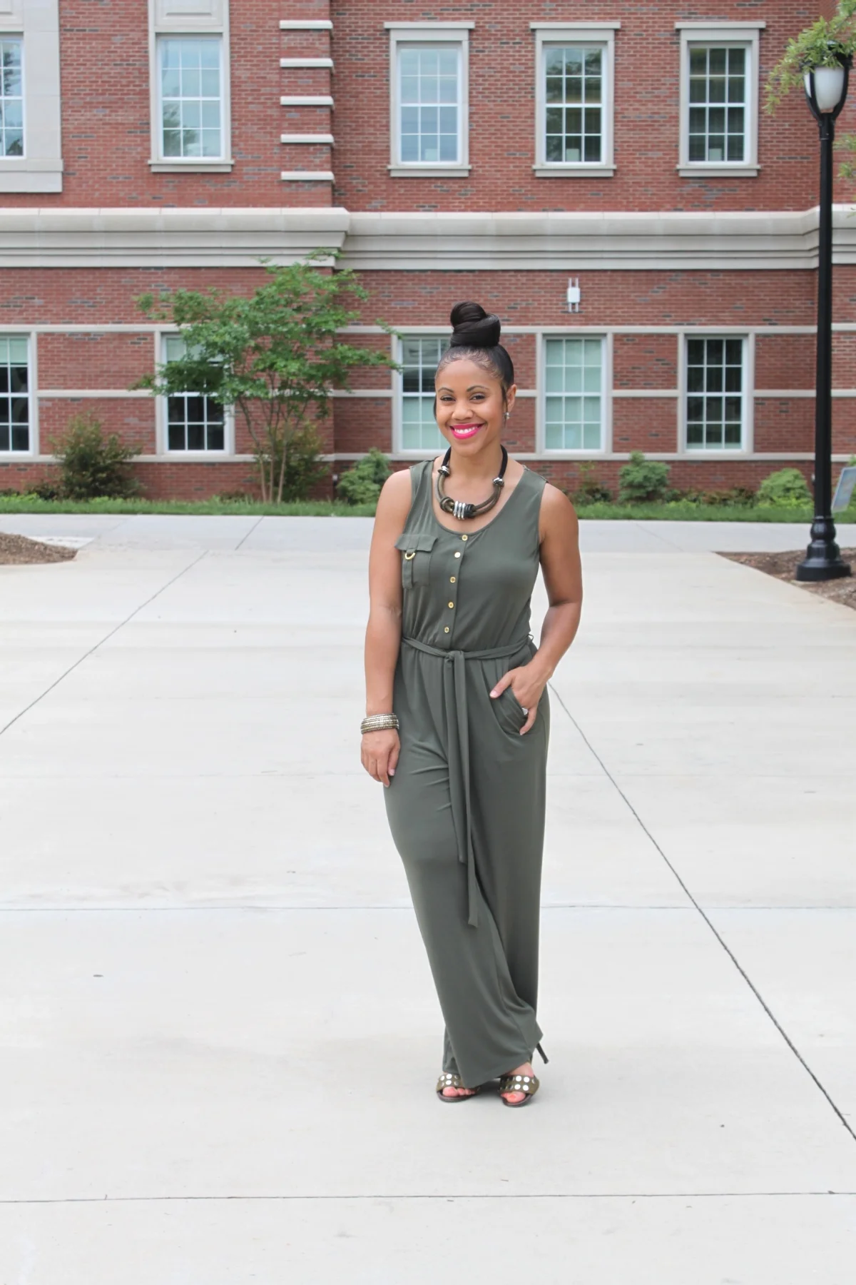 Happy Hump Day! I wanted to share some midweek outfit inspiration. I’m a huge fan of jumpsuits, but I usually have difficulty finding one that fits my petite body frame. Brands definitely don’t tailor jumpsuits with us short girls in mind. Now I’ve learned to shop for the jumpsuits that I like, and just take them to the tailor for a good hem. I found this Calvin Klein jumpsuit, and just fell in love with the slinky, green material. It’s currently sold out, but i’ve found some other cute options in the link bar below.