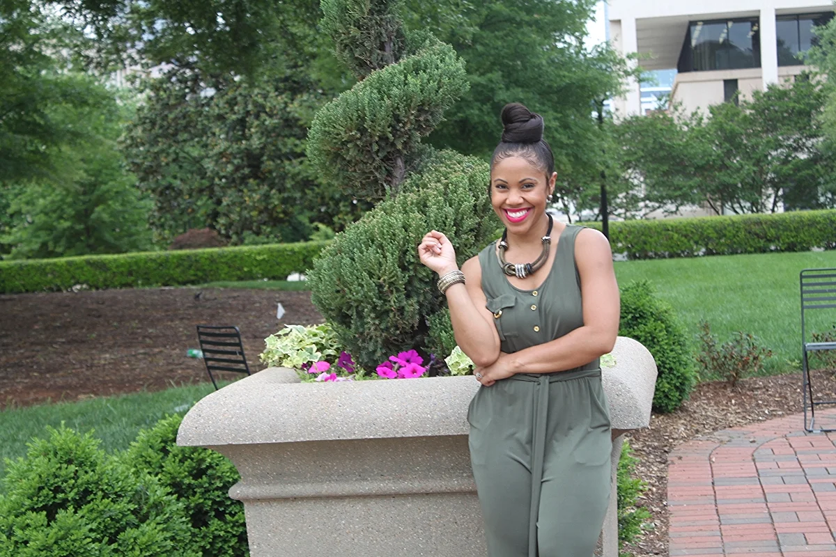 Love your green jumpsuit. And the matching jewelry that goes with it.