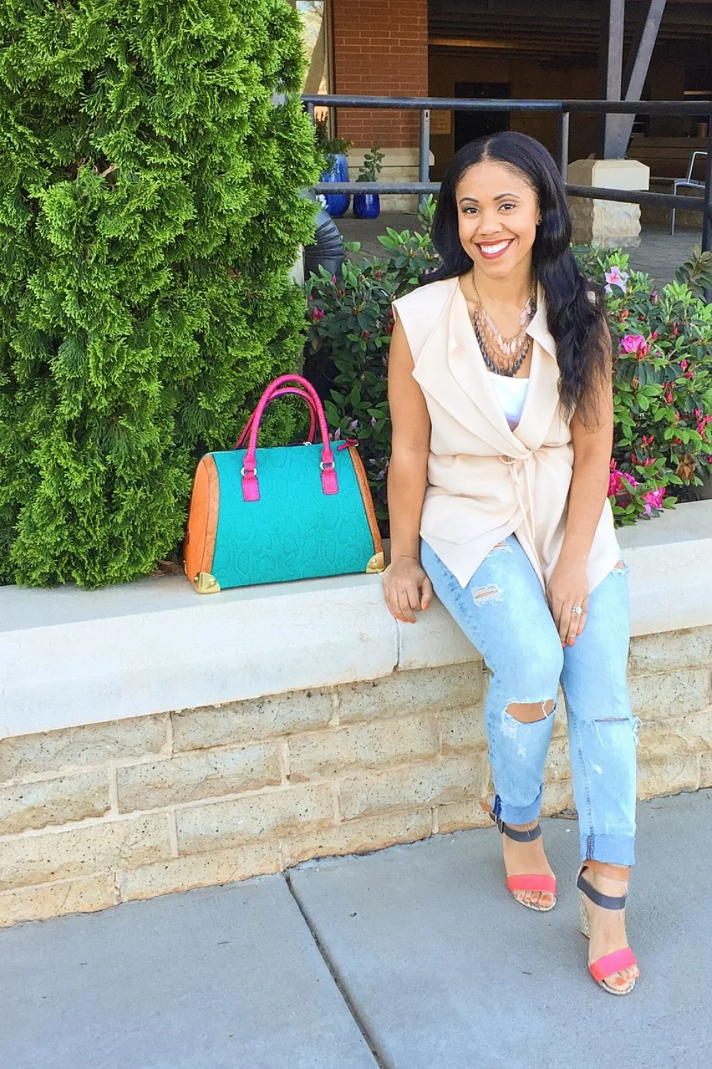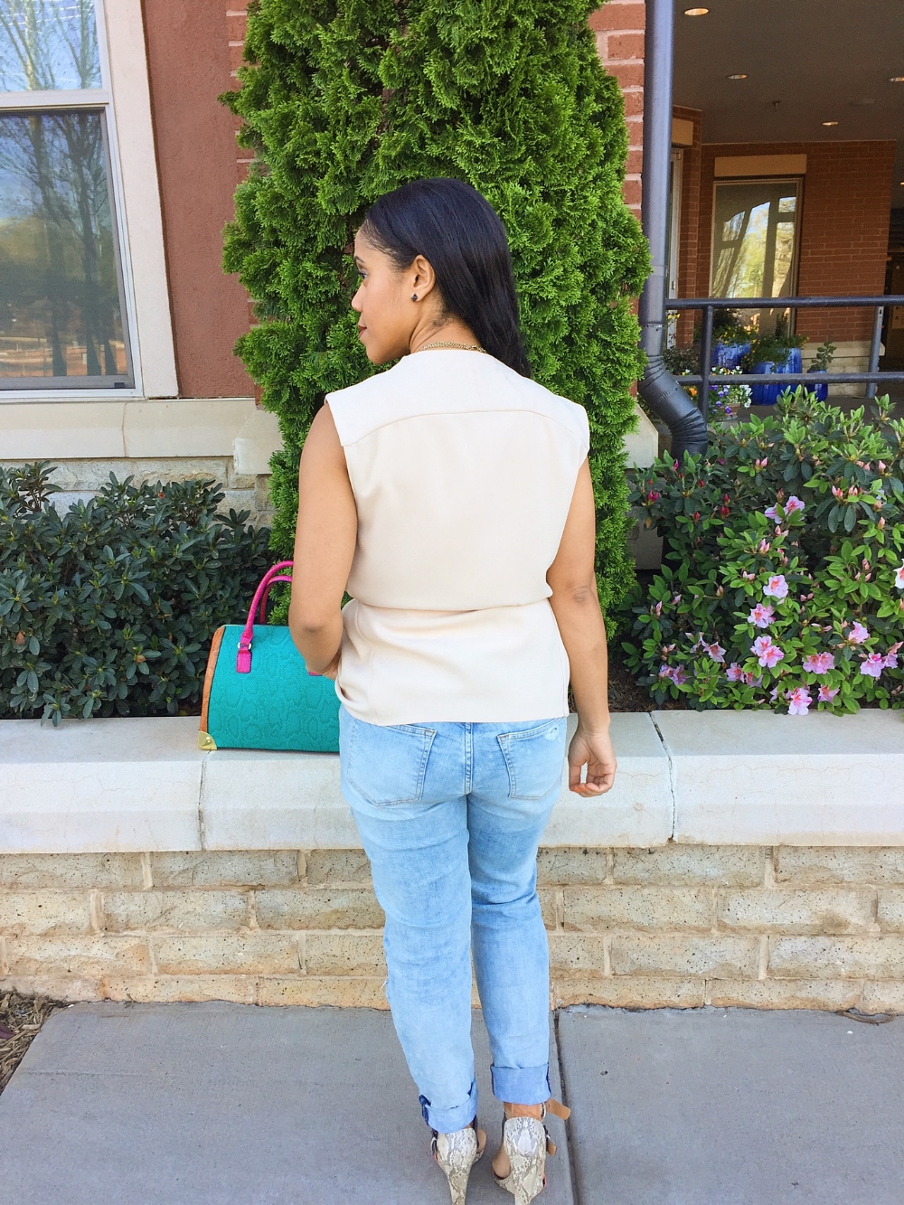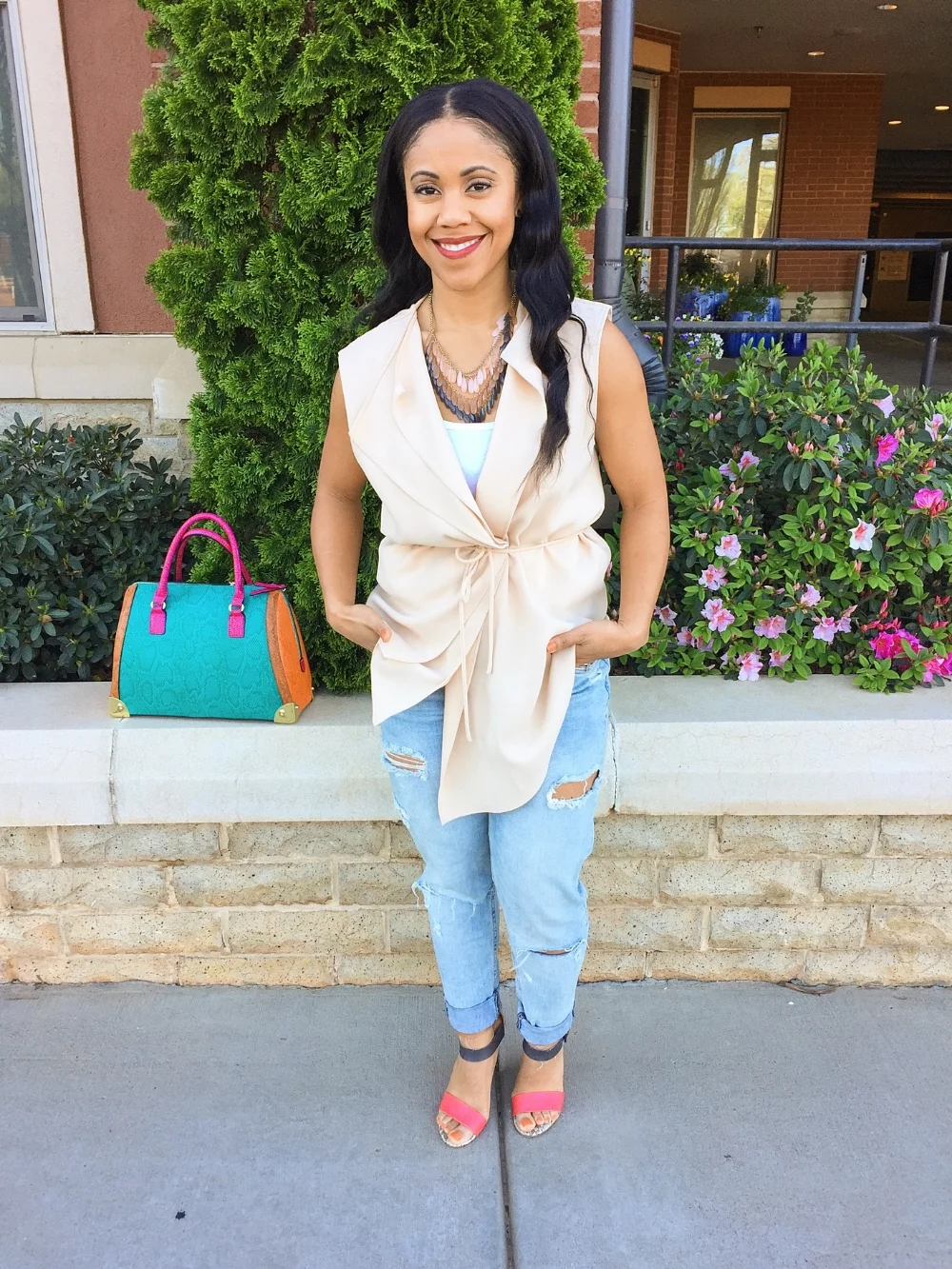 Cute look, I’ve been seeing a lot more of those sleeveless vest. Need to go try one on soon! Loving the bag as well!